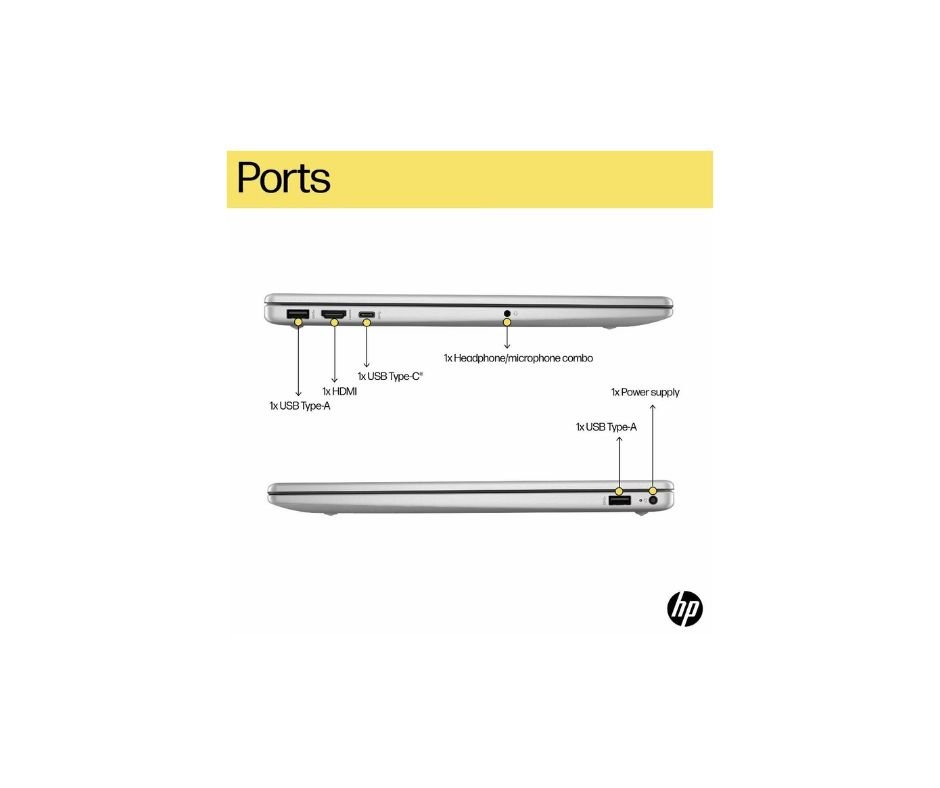 - Ports & Connectivity : 1 USB Type-C 5Gbps signaling rate (supports data transfer only and does not support charging or external monitors); 2 USB Type-A 5Gbps signaling rate; 1 AC smart pin; 1 HDMI 1.4b; 1 headphone/microphone combo| Connectivity: Realtek Wi-Fi 6 (1x1) and Bluetooth 5.3 wireless card